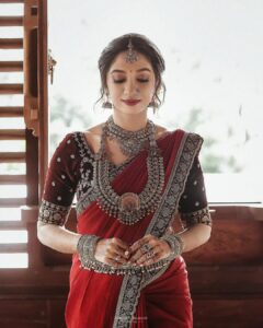 Heirloom gold, traditional bangles, and temple necklaces are defining the “old money” look – timeless and confident. Brides in 2026 embrace luminous, dewy skin and minimal makeup, echoing Kerala’s natural radiance and inner peace.